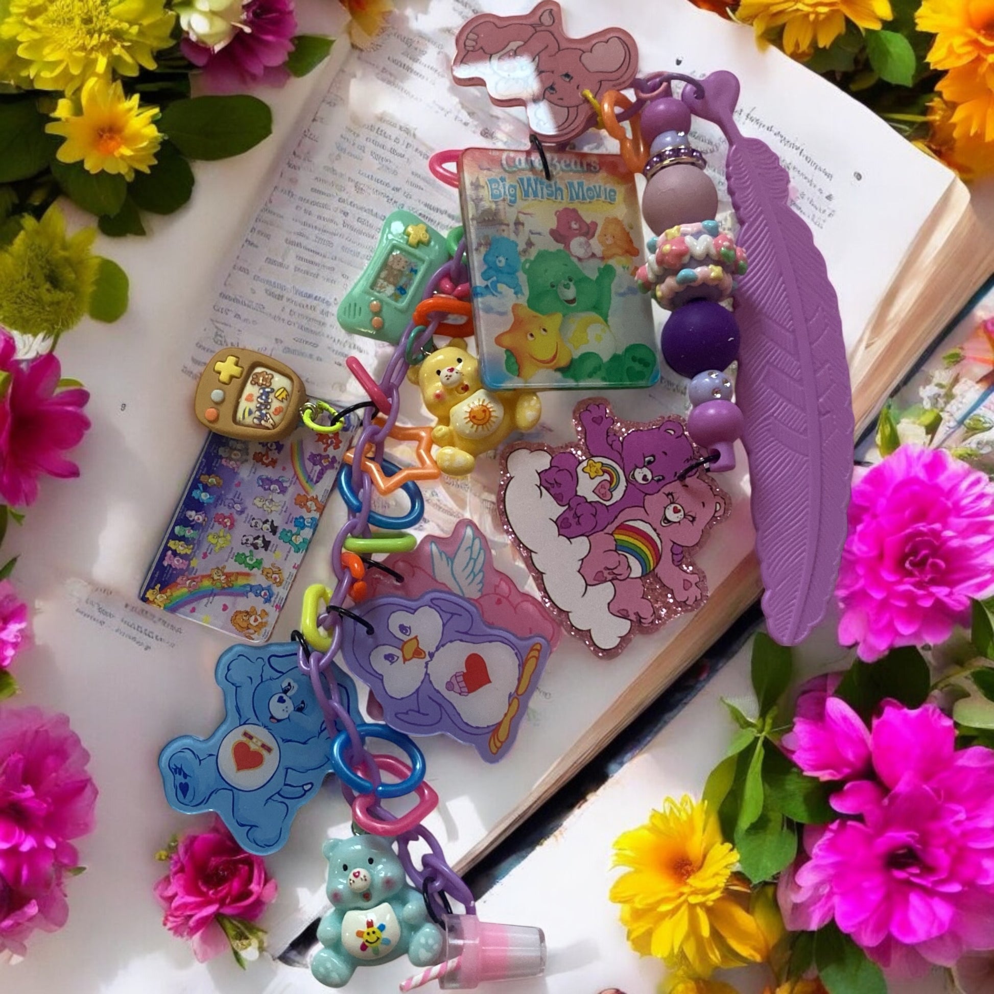Rainbow Bears Beaded charm Bookmark & friends, Reading, junk journaling bookmark, 80s, 90s, vintage era, nostalgia, care