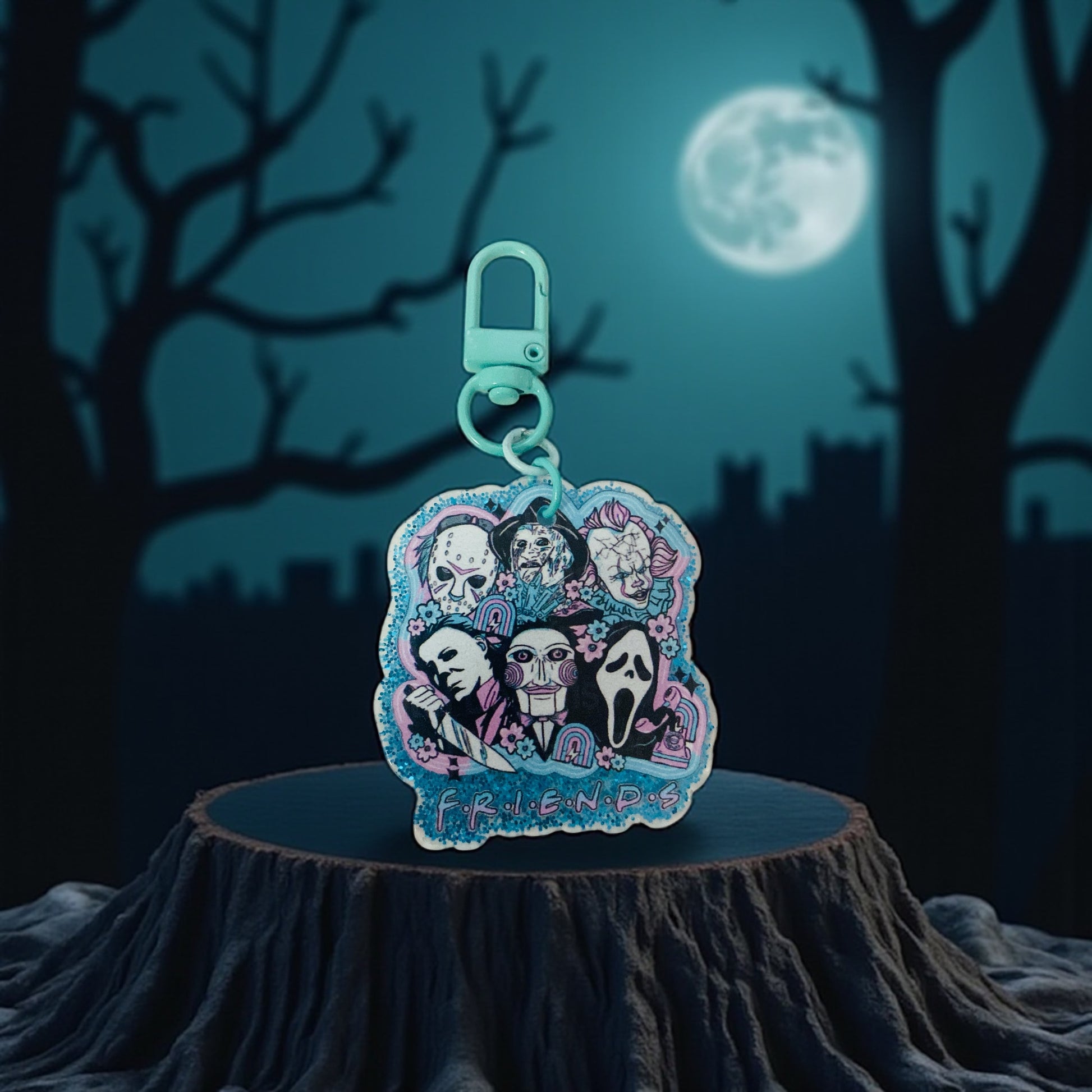 Crazy Killer Psychos friends key chain, bag charm,purse tag & friends, junk journaling, keychain, 80s, 90s, vintage era, nostalgia, Besties, best friend, keychain, tv show, penny wise, scream, Jason, Freddie Kruger, scream